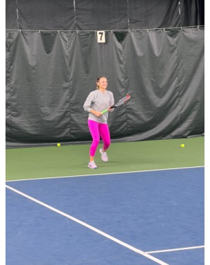 They will be instructed using appropriate size racquets (25 to 27 inches), playing on a full court over a regular size net and using green dot balls.