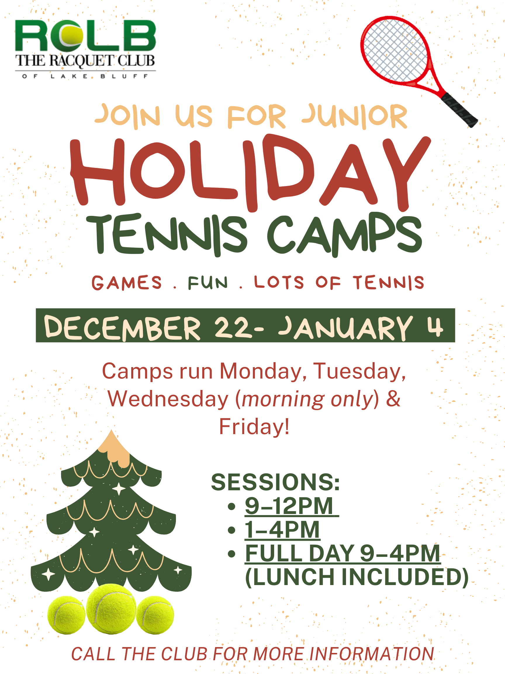 Celebrate the holidays with us at our Holiday Tennis Camps!